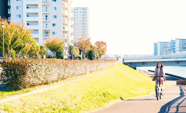 ▶ 電動アシスト自転車なのに22kgの軽量設計。コンパクトに折りたため、女性でも取り扱いが楽々。