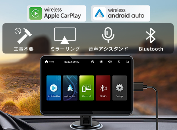 KUSTA M8はワイヤレス接続でCarPlayとAndroid Autoの機能を利用できます。この機能を使えば、「いつも使っている地図アプリを使える/ハンズフリーで通話やメッセージの送受信ができる/大好きな音楽が聴ける」など、より安全で快適なドライブを楽しむことができます。