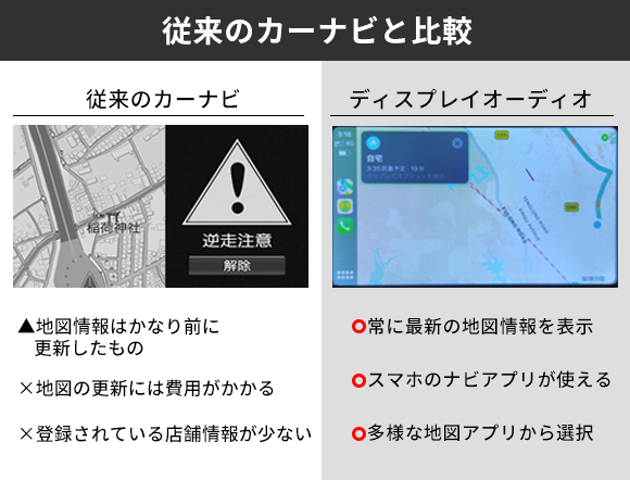 2. CarPlayやAndroid Autoに対応、地図データは常に最新状態。