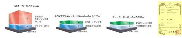 ガラス被膜+レジン被膜の重層の透明被膜が生んだ、「愛車のツヤと輝きを凌駕するボディガラスコーティング」。