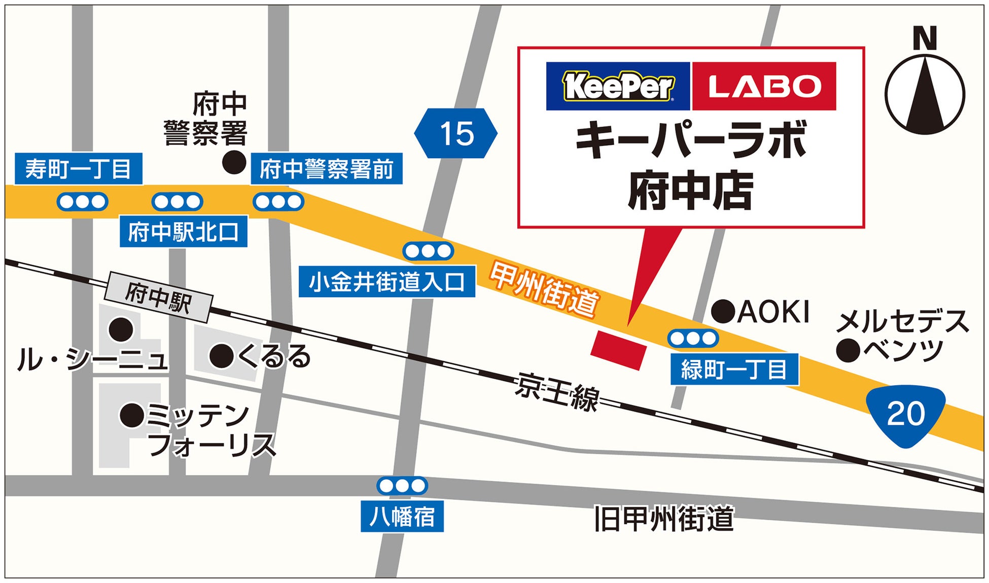 KeePer LABO 府中店は、主要幹線道路である甲州街道に面した店舗で、人口が東京都内で4番目に多く(約26.2万人) 、三鷹店・小平店とも隣接している為、早い認知が期待できそうです。