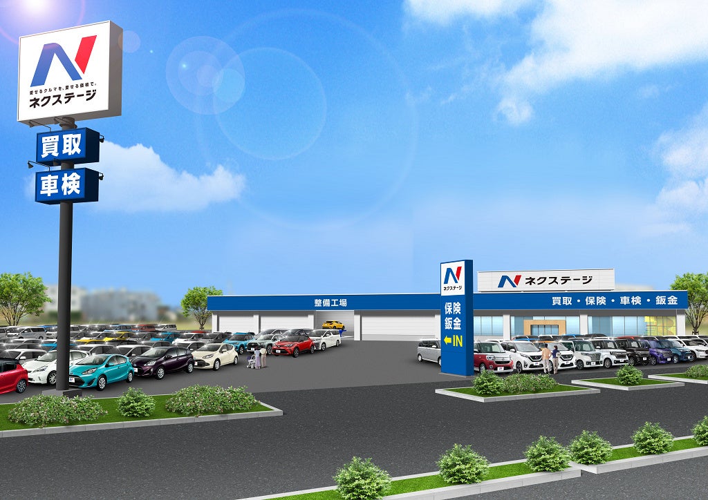 今回オープンする2店舗は、総合店として軽・コンパクト・SUV・ミニバンなど地域最大級の在庫台数を取り揃え、お客様の充実したカーライフをサポートするために、日常のオイル交換、メンテナンスや車検・鈑金修理などでご利用いただける整備設備も充実、お車の査定ができる買取店も併設させた店舗となっております。また、ネクステージグループ全体の店舗数は全国で279店舗となりました。