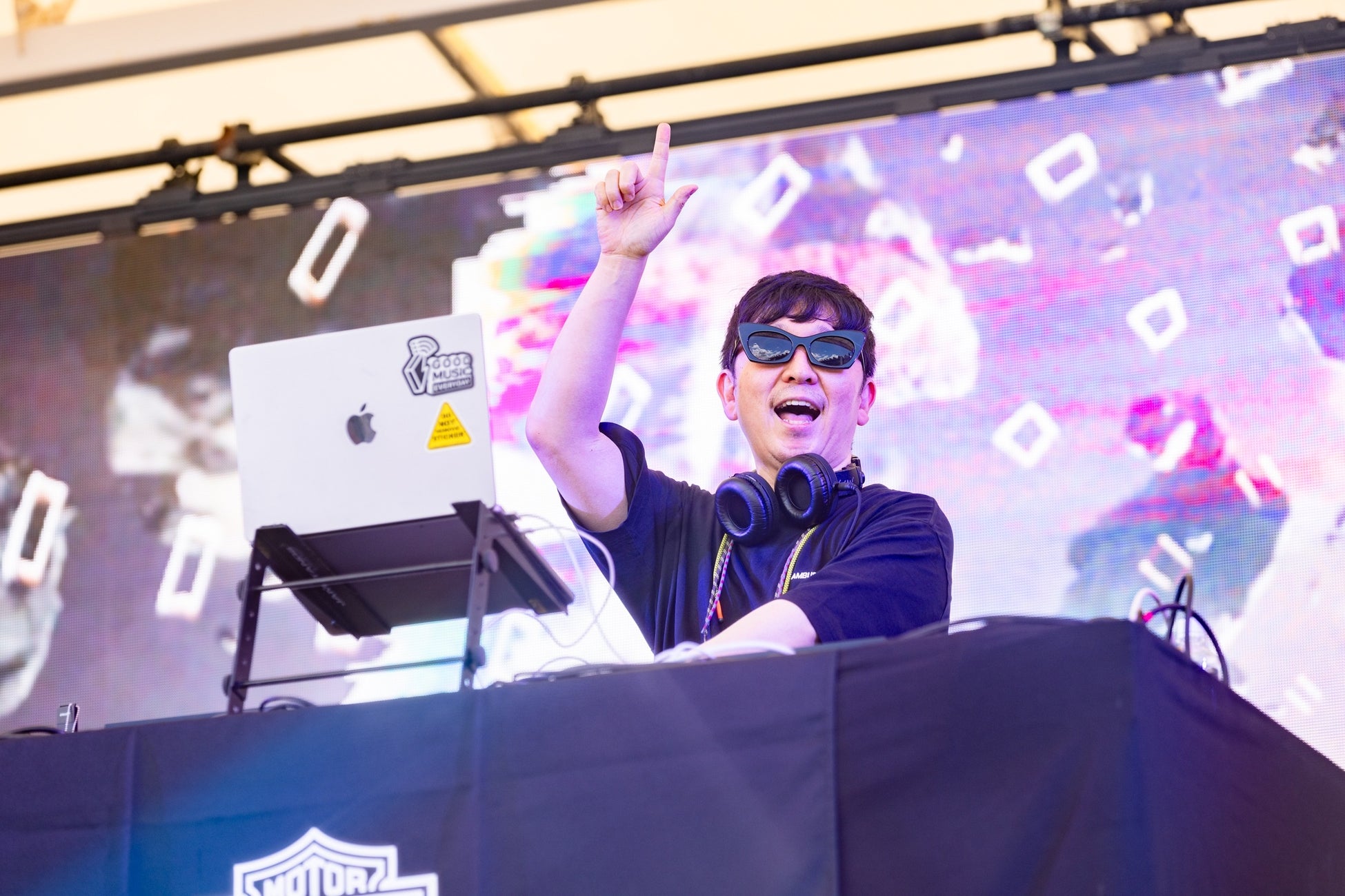 強い日差しが会場を照りつける中、レゲエサウンドでパフォーマンスをスタートしたのは、トッププロデューサーの☆Taku Takahashi(m-flo, block.fm)。ヒップホップ、EDM、テクノ、ジャージークラブと、踊れるオールジャンルミックスで会場を大いに沸かせます。m-flo loves MINMI「Lotta Love」や宇多田ヒカル「Gold ~また逢う日まで~」の☆Taku Remixがかかると、観客の熱気も最高潮に。参加者が会場の至る所で自由に踊り音楽を楽しむ姿が印象的でした。