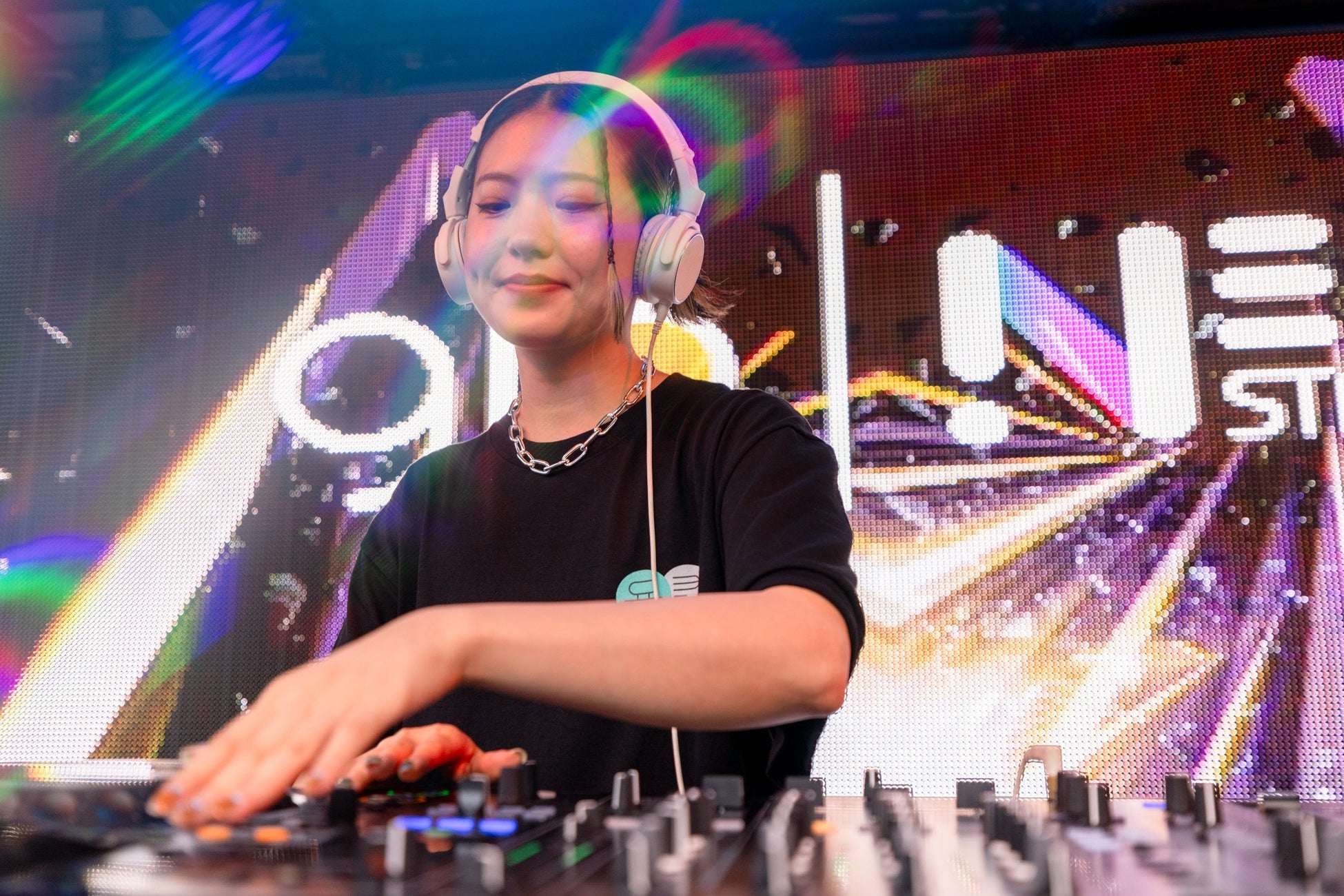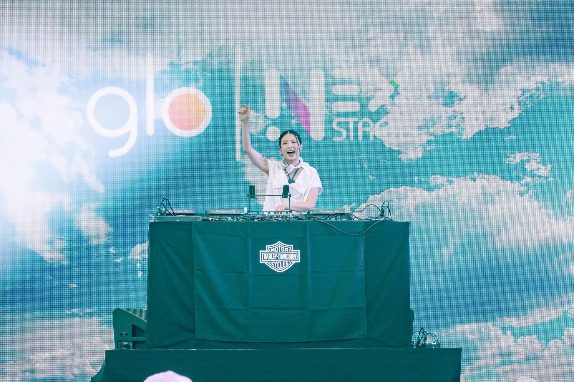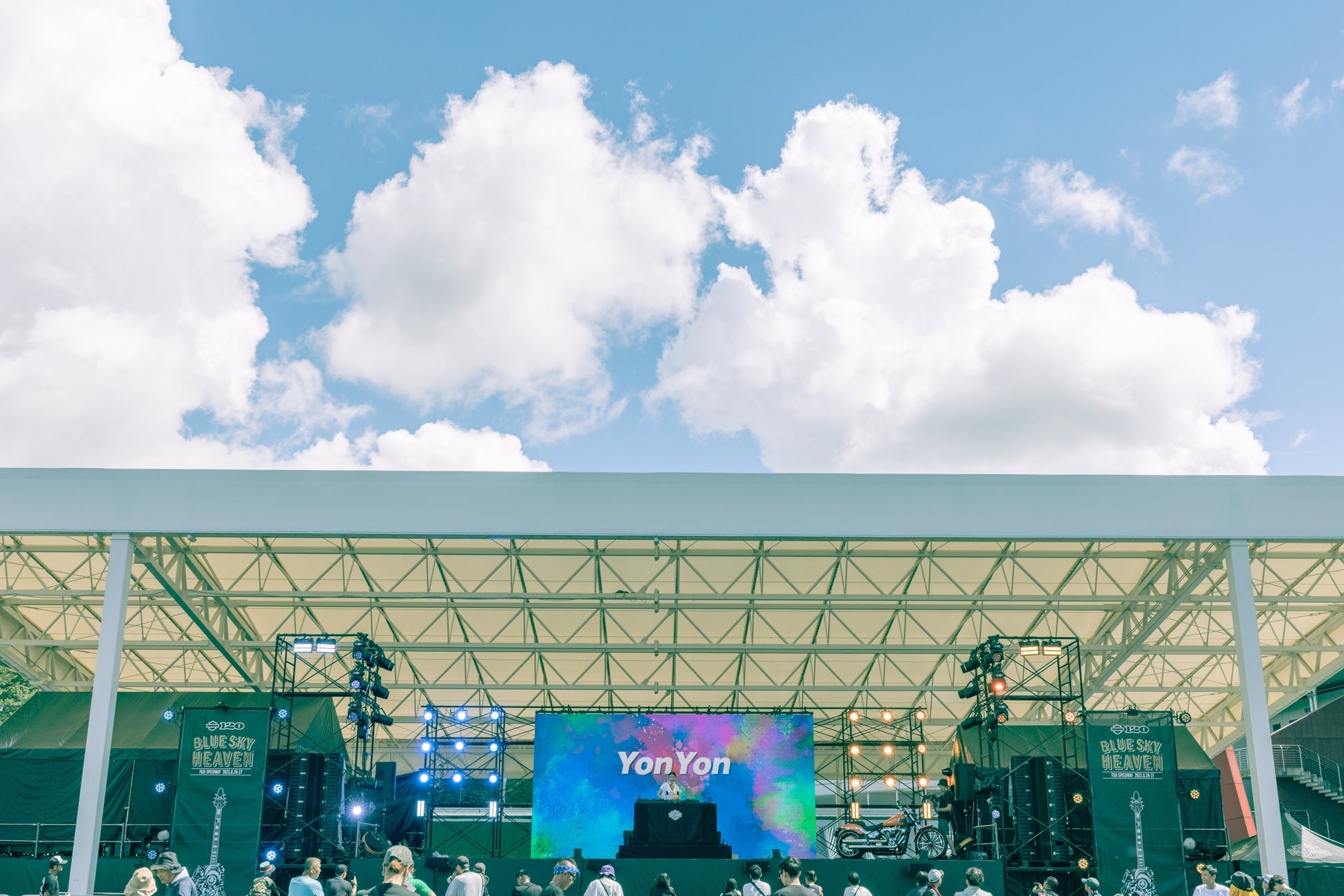 メインステージの「BLUE SKY STAGE」は、block.fmとglo™によるコラボプロジェクト「glo™ NEX STAGE」とコラボしたDJパフォーマンスからスタート。フジロックなど大型フェスにも出演するDJ/アーティストのYonYonがオープニングアクトを飾り、爽快な青空のもと、ゆったりとのれるR&Bからアグレッシブなヒップホップまで縦横無尽にプレイし、続々と会場に到着する観客を出迎えます。「Beautiful Woman」や「mirror(選択)」といった自身の楽曲では自らマイクを持ち歌声を披露し、ステージ前に集まった観客を魅了していました。