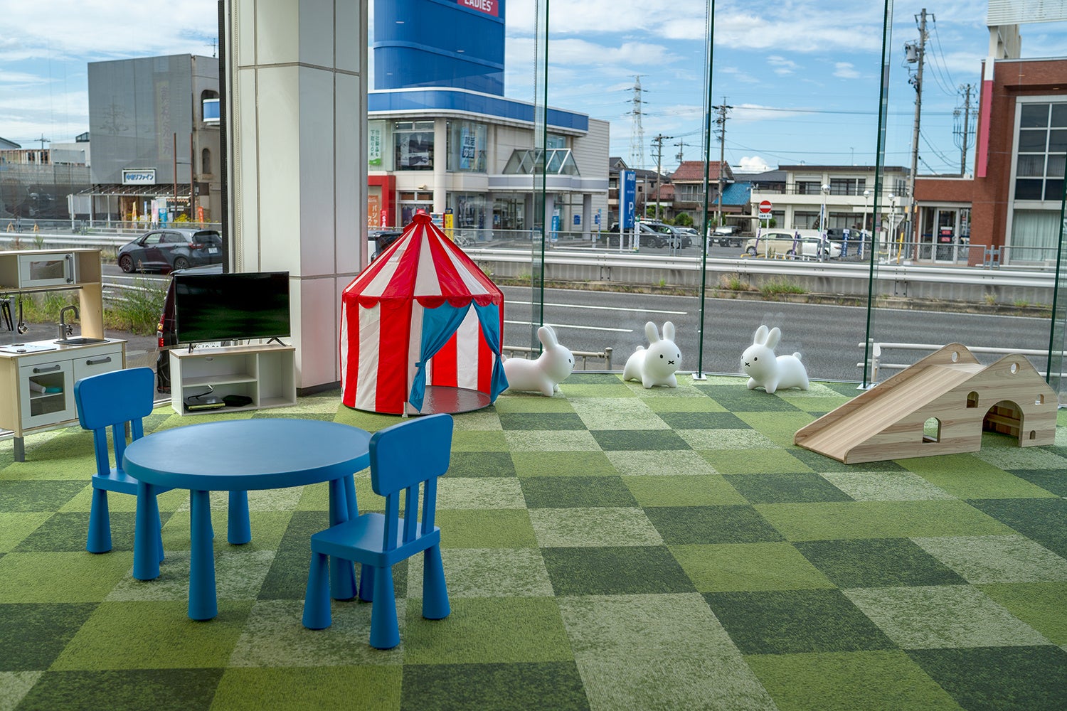 広々としたキッズスペースを完備しておりますので、安心安全に作業完了までお待ちいただけます。