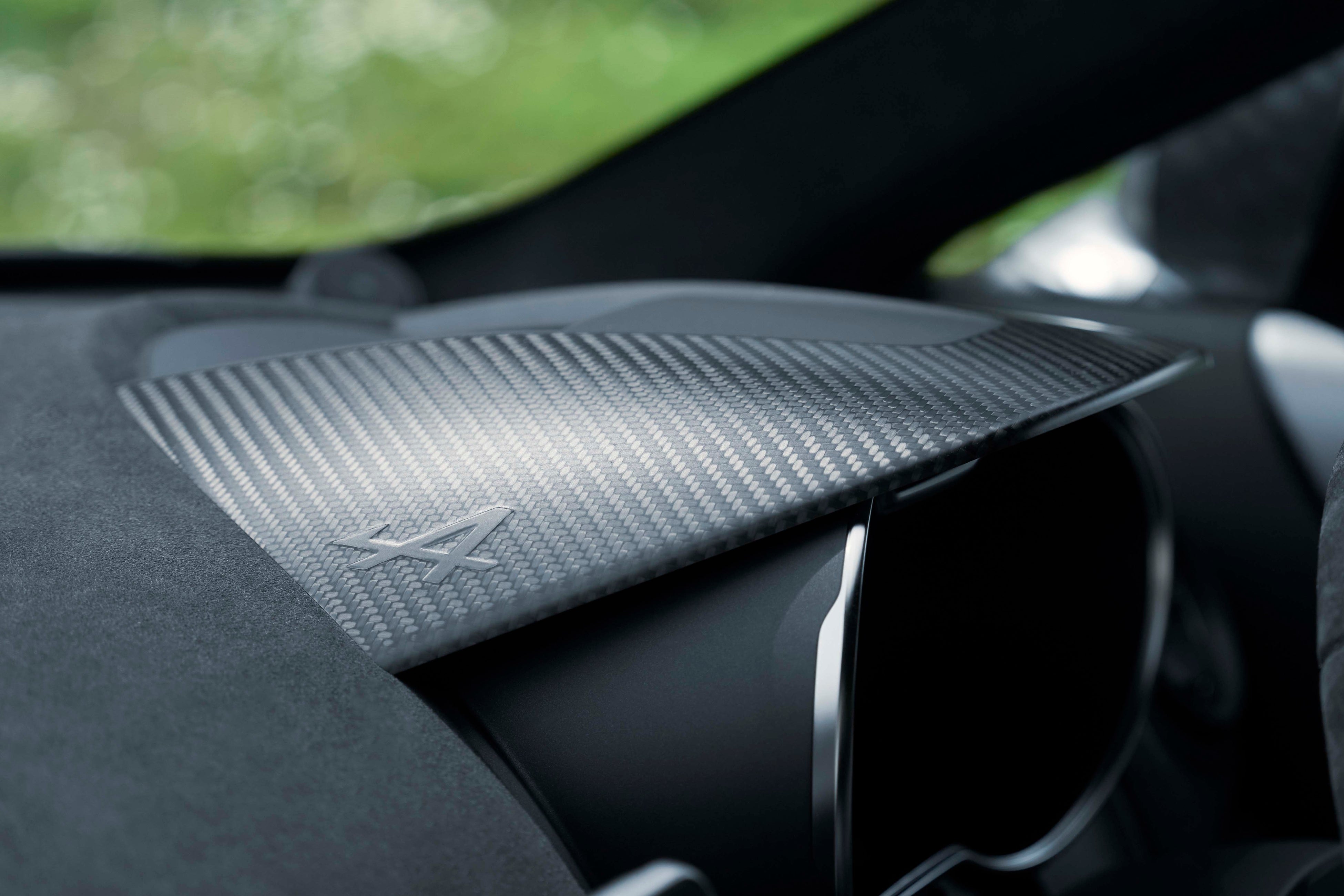 アルピーヌ A110 S エンストンは、エンストン工場が長年培ってきた、F1マシンには欠かせないカーボンパーツの高度な成型技術とノウハウを活用し、アルピーヌ F1マシンと同じカーボン素材を使用してエンストン工場内で製造されたメーターバイザーとセンターコンソールを、装備しています。