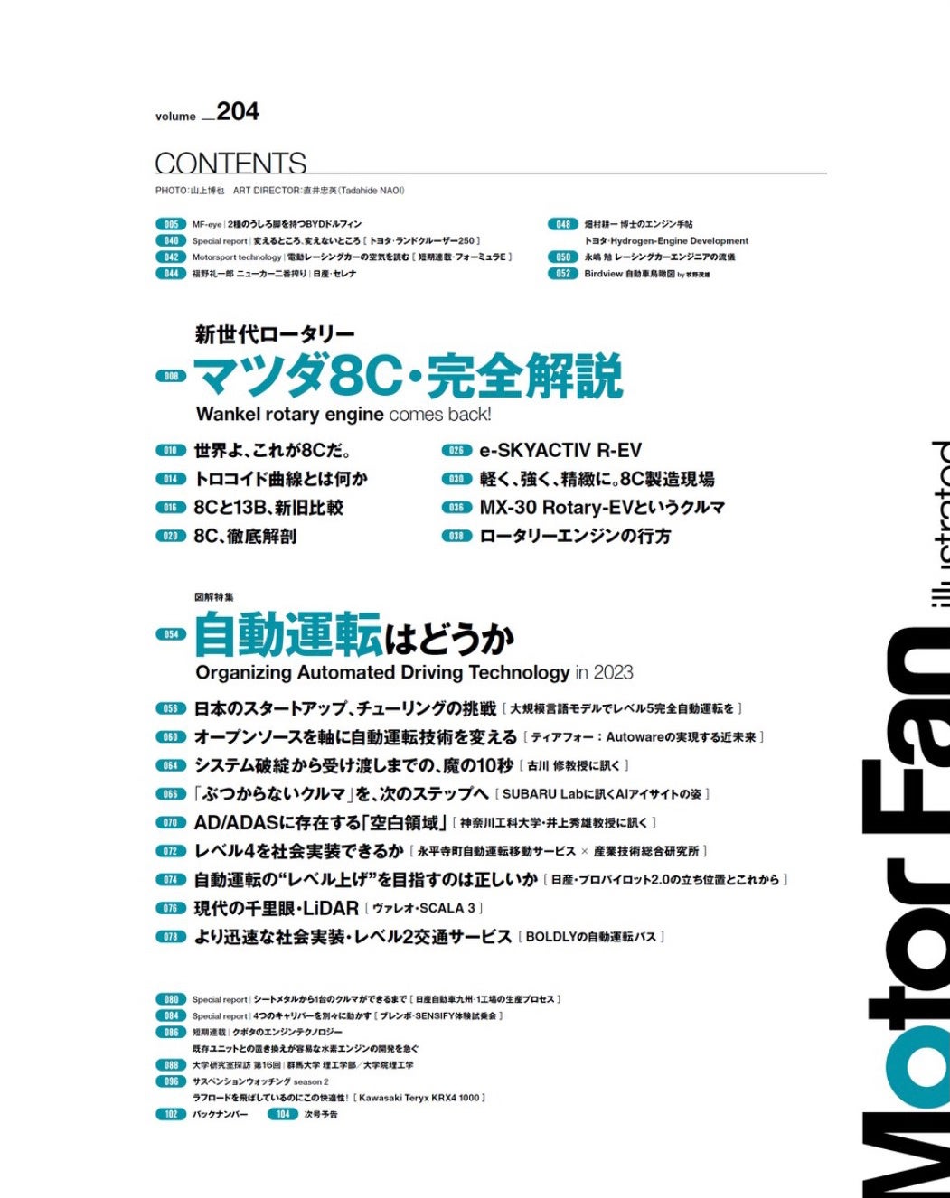 特集:自動運転はどうか『モーターファン・イラストレーテッド Vol.204』新世代ロータリー:マツダ8C・完全解説