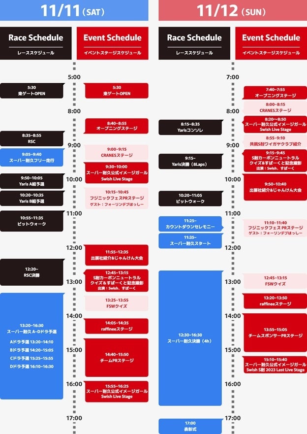 11月11日(土)、11月12日(日)「S耐ファイナル 富士4時間レース with フジニックフェス.」タイムスケジュールや、当日開催のイベントをご紹介