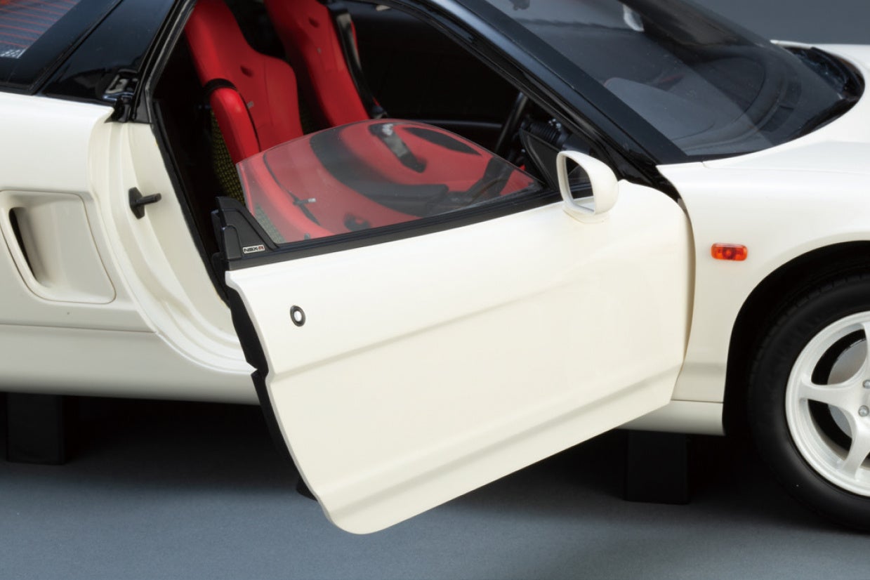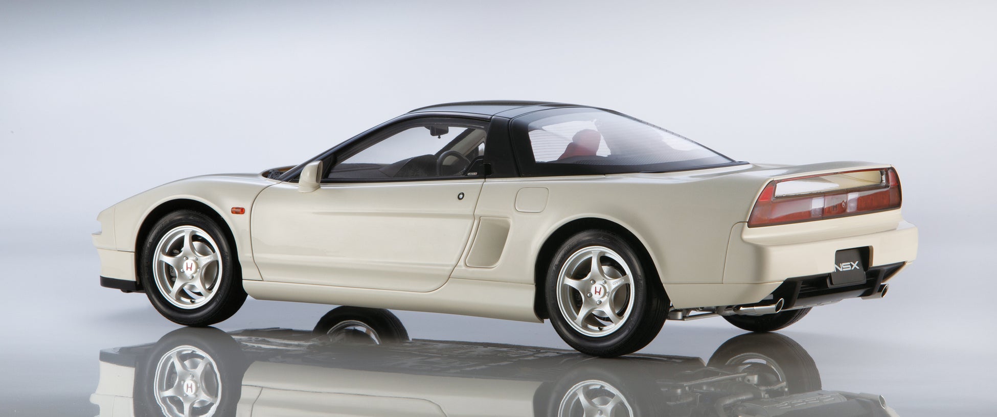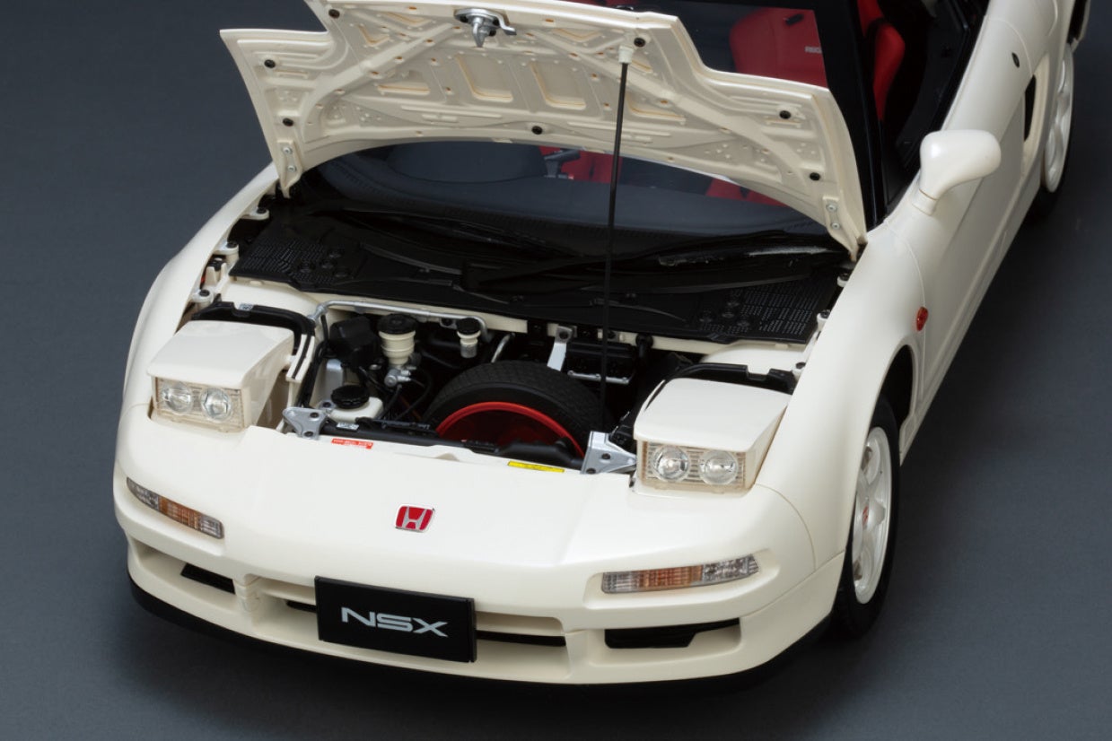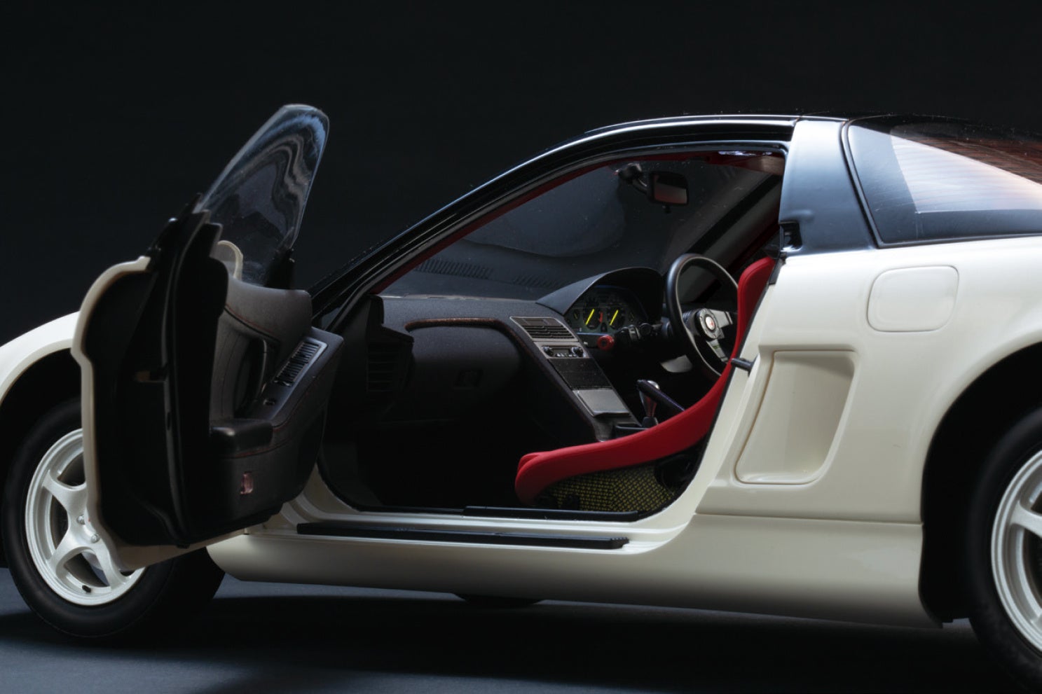 1992年11月にデビューしたHonda NSX-R(E-NA1型)を再現するにあたり、モデルの設計及び開発時には本田技研工業株式会社の協力のもと実車を徹底取材。外観のデザインはもちろんのこと、外からは見えないエンジンルームやボディ下面も確認することで、ディテールをブラッシュアップ。1/8スケールならではのリアリティと重厚感あふれるダイキャストモデルが完成します。