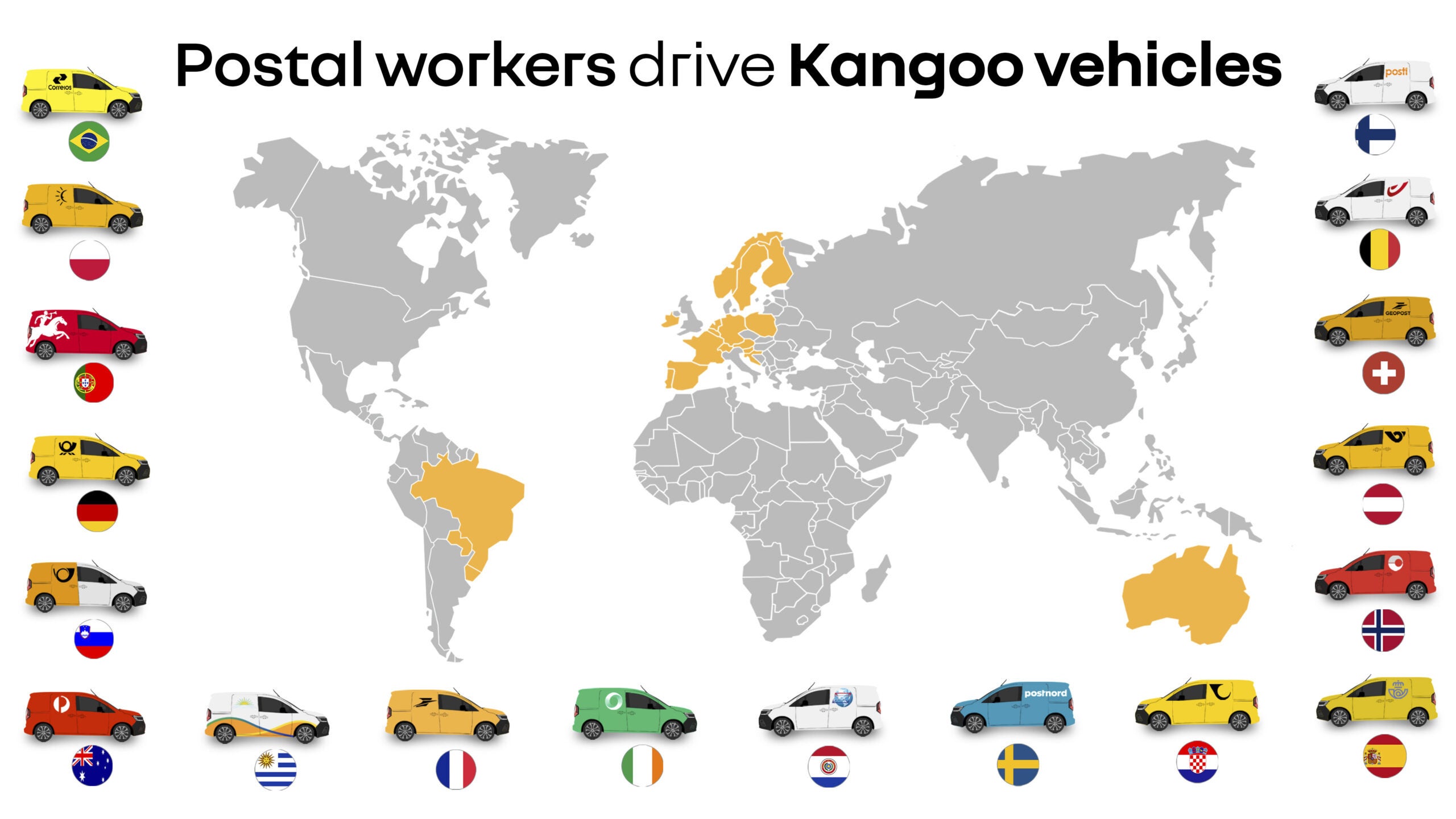 フランスで郵便車のルノー カングーに使用された歴史的な黄色のボディカラーは、この色が特に人気を得ている日本の顧客にとっては象徴的な色となっており、2015 年には「ラ・ポスト」というモデルが150台限定で販売されました。