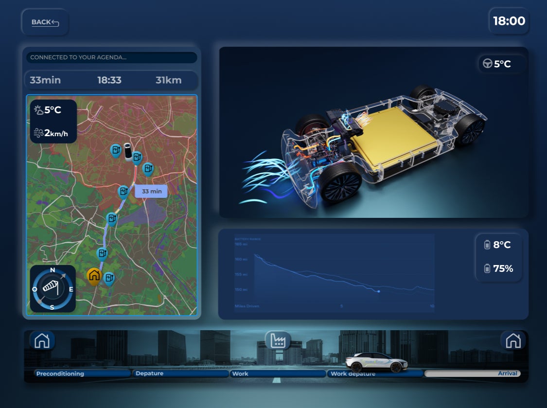 この初公開のソフトウェア・ソリューションは、EVの最も効率的なサーマルマネージメント戦略を予測して実行し、走行距離を最大24%まで延ばすことを可能 (つまり、急速充電のために充電場所に寄る回数の低減) にするとともに、バッテリーの長寿命化に貢献します。