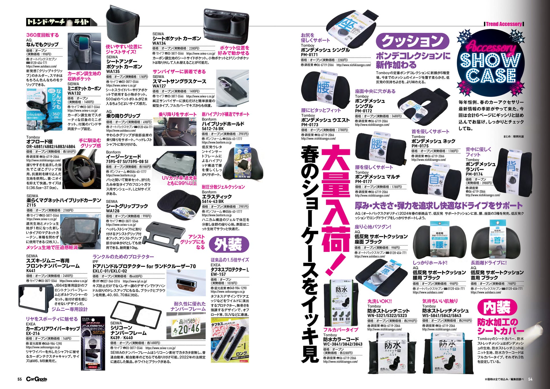 - この春にリリースされたばかりの新作カーグッズをいち早く大特集! 巻頭から怒濤の速報でお届け!