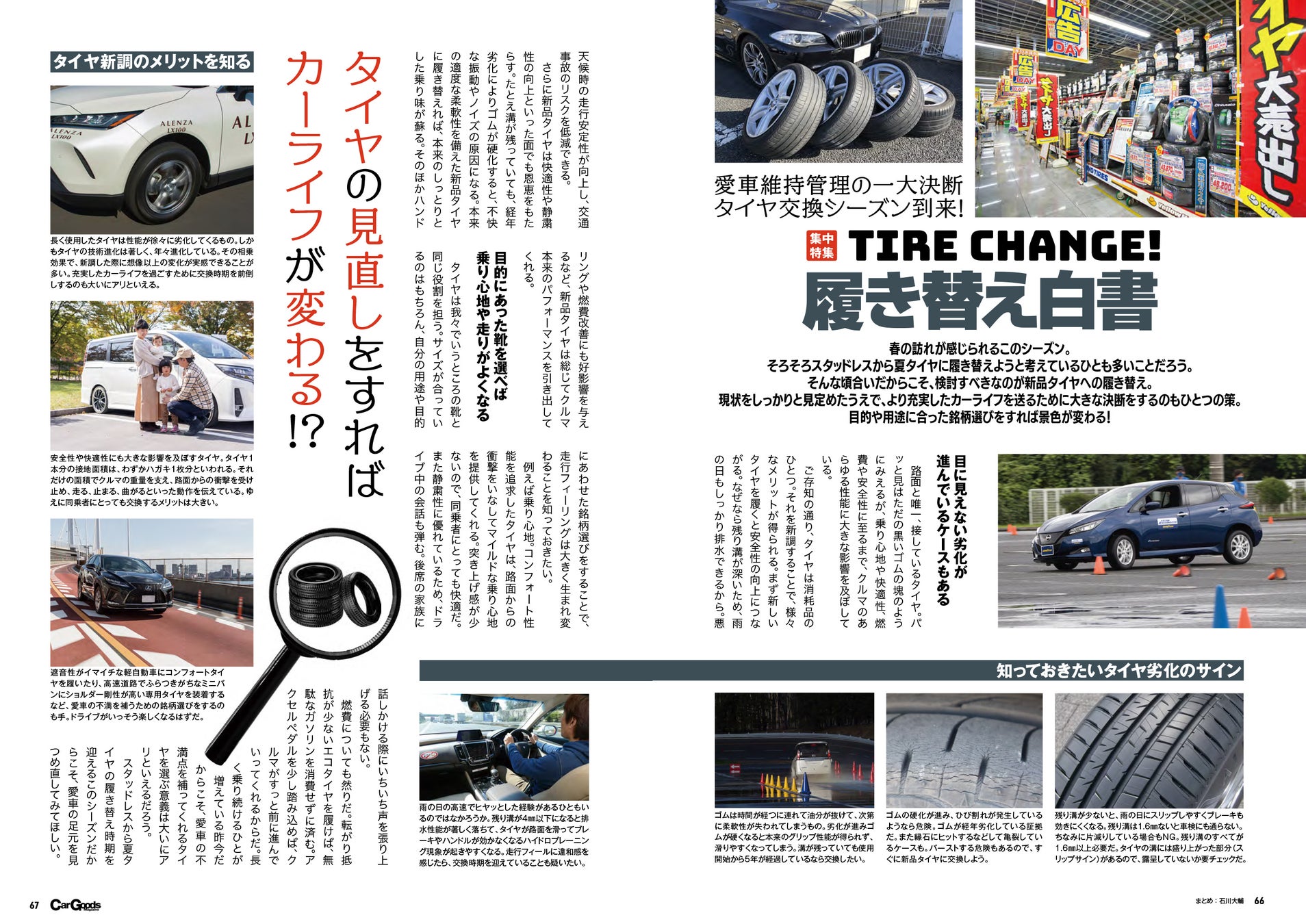 - 新作ラッシュと並び、カーグッズの春を告げるタイヤ交換事情も集中特集。2号連続展開となるその前編は、タイヤ交換にまつわるおさらいハウツーからスタート。