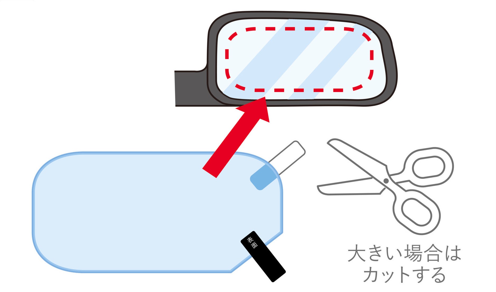 超撥水フィルムがミラーより大きい場合は、カットして使用できます