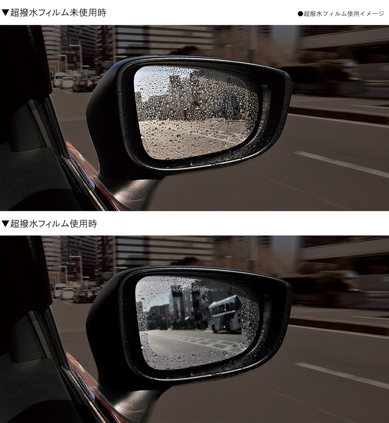 ●超撥水フィルムで雨がつかず、視界がクリアに