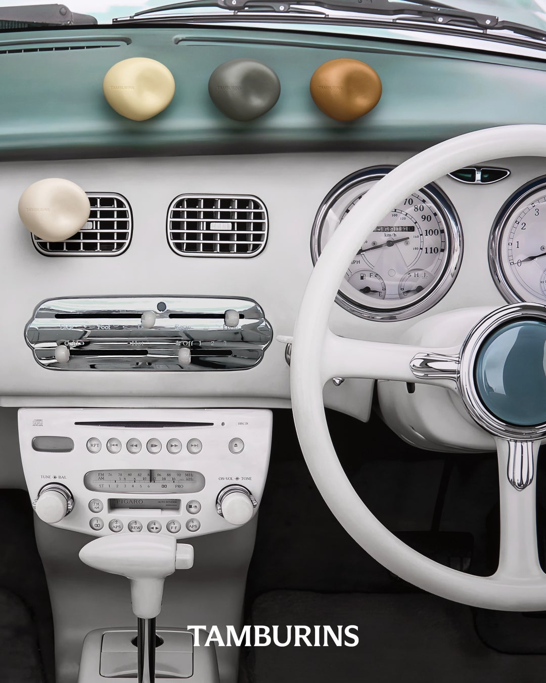 タンバリンズはカーディフューザーの日本発売を記念して、東京青山フラッグシップストア1階の空間をリニューアルする予定です。ほのかな色合いのカーディフューザーからインスピレーションを得てデザインされた今回の空間は、タンバリンズが想像する美学が込められた自動車を一つのアートウォールとして表現しており、他ではなかなか出会うことのできない感覚的なカーシートとハンドルのデザインは、タンバリンズならではの新しい美学体験をご提供します。