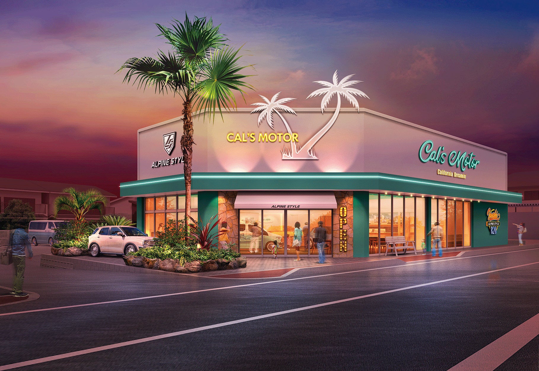 東名高速道路 町田インターチェンジそばの「ALPINE STYLE横浜246」(東京都町田市)、東京都や北関東をカバーするエリアに立地する「ALPINE STYLE埼玉R4」(埼玉県越谷市)に続き、東京都西部エリアからアクセスしやすい東八道路沿いに「ALPINE STYLE東京」、関東エリアを広範囲に結ぶ国道16号線沿い、東京都東側や千葉県をカバーする拠点として「ALPINE STYLE千葉R16」を2025年春に続々オープンします。関東エリア4店舗体制とすることで、お客様にもっとお気軽にCal’s Motorの世界観や車両をご体感いただけるように、Cal’s Motorはもっとお客様の近くに。そして、お客様とのコミュニケーションをこれまで以上に深め、お客様のカーライフに寄り添っていくことを目指して参ります。「ALPINE STYLE東京」「ALPINE STYLE千葉R16」のオープン日時など決まりましたら続報としてリリースにてお知らせして参ります。