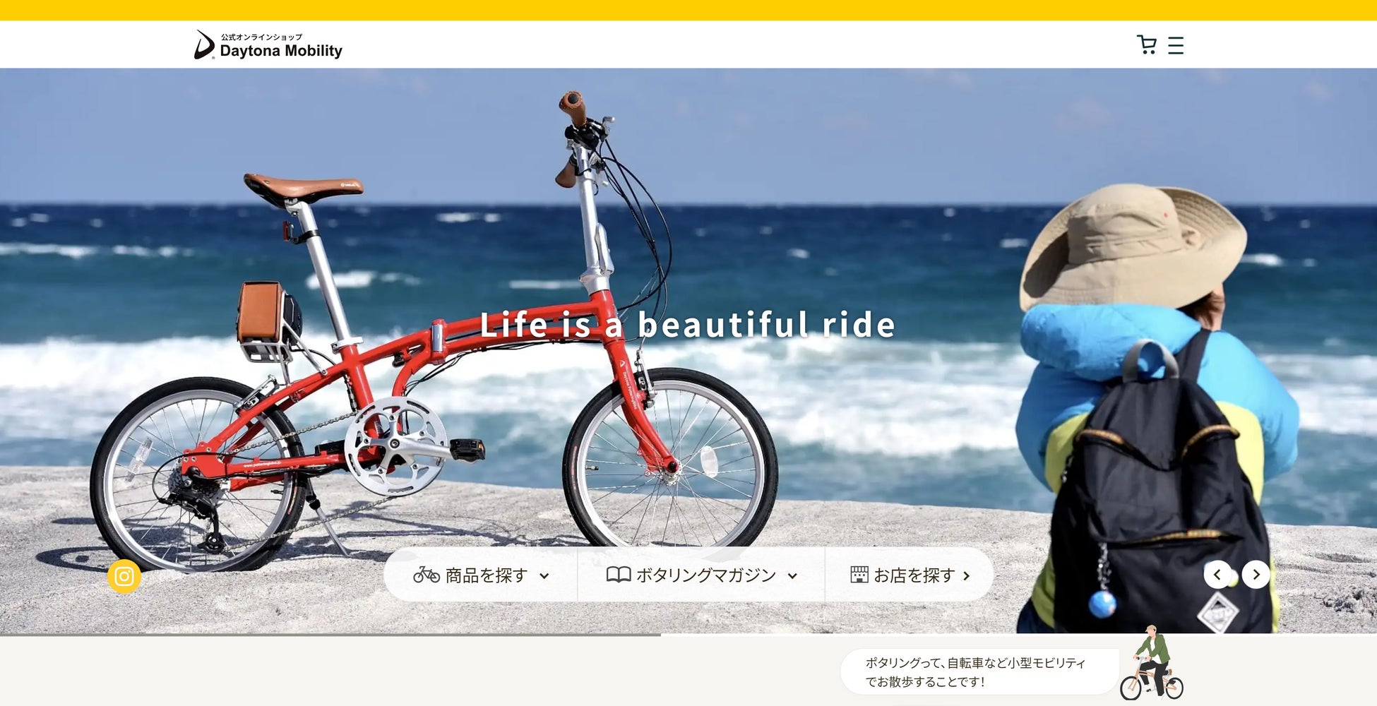 今回オープンするECサイトDaytona Mobility Shop(デイトナ モビリティショップ)はECの便利さと実店舗の安心感を融合させたECサイトになっています。